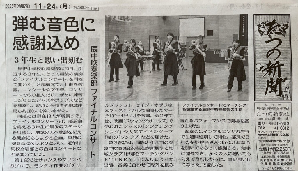 11月24日のたつの新聞でTENRYUが紹介されました!